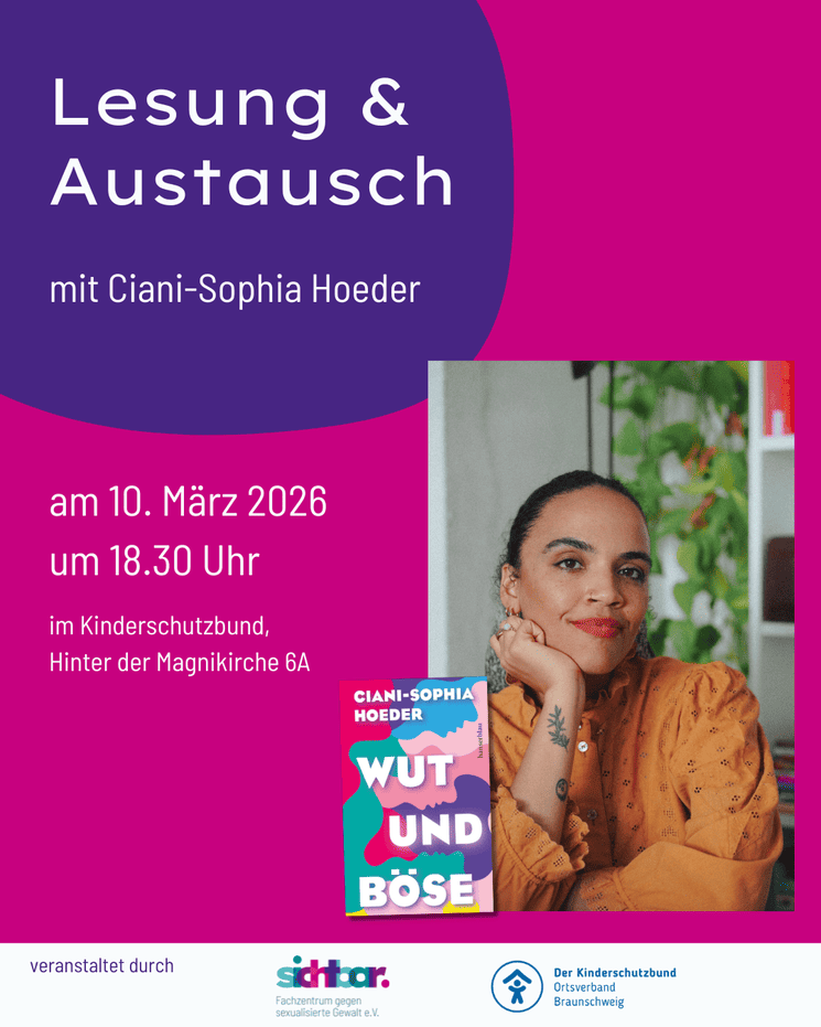 Ciana-Sophia Hoeder kommt nach Braunschweig und liest mit uns gemeinsam in ihrem Buch “Wut und Böse”.